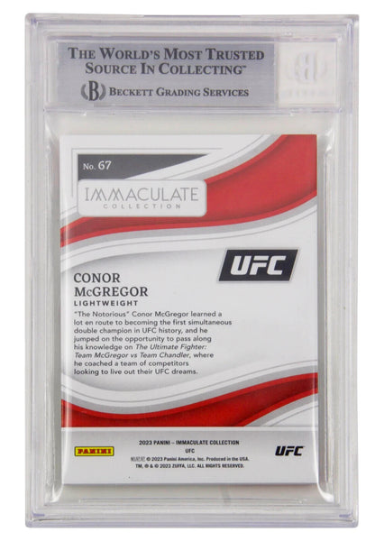 This is a Conor McGregor Signed 2023 Panini Immaculate UFC Gold /10 - BGS Authentic. THE ITEM IN THE PICTURE IS A STOCK IMAGE. YOU WILL RECEIVE AN IDENTICAL ITEM OF EQUAL QUALITY. ALL JERSEYS ARE SIZE LARGE. Every item of signed memorabilia we sell is official and of the highest quality. We pride ourselves on providing sports fans with the most exclusive signed memorabilia on the market. We are an industry leading signed memorabilia company who can guarantee 100% authenticity on every signature we sell. The item you receive will be identical to the one you are seeing in the stock pictures. This includes the item, the authentication company, signature color and signature placement. We take pride in ensuring the authenticity of all our items. With unwavering commitment, we guarantee that every signature is 100% authentic. Every item of signed memorabilia comes with a scannable barcode which takes you to the certificate of authenticity on the company's website. These industry leading authentication companies include Beckett Authentication Services, James Spencer Authentication Services and Professional Sports Authentication Services.