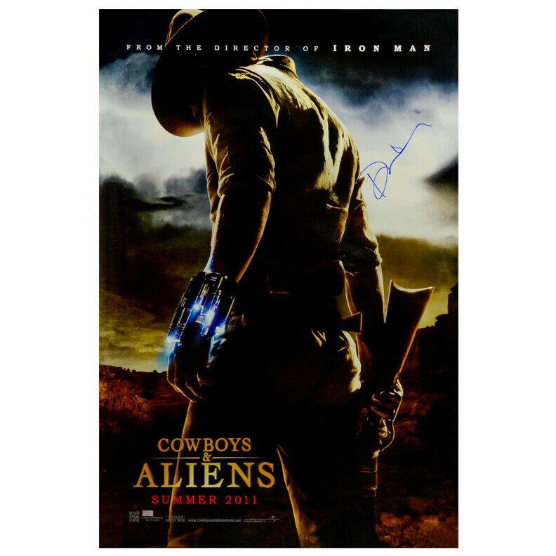 Celebrity Authentics is the exclusive autograph partner of Daniel Craig. Please be aware most other online autographs purported to be Mr. Craig's are forgeries. Mr. Craig has only signed with Celebrity Authentics so be sure the item you choose is affixed with the Celebrity Authentics Authentication Hologram for his genuine signature.This 2011 Cowboys & Aliens Original 27x40 Double-Sided Movie Poster has been personally hand-signed by Daniel Craig during his signing with Celebrity Authentics. Poster is the highly sought after original film release, as provided by the studio to the theaters for the promotion of the film. Poster ships affixed with the Celebrity Authentics serial-numbered and tamper evident Authentication Hologram and includes Celebrity Authentics Certificates of Authenticity featuring picture of the talent signing poster. Please note: with multiples signed by the actor, a sample photo is used from stock to represent what you will receive. Exact autograph size and placement may vary.