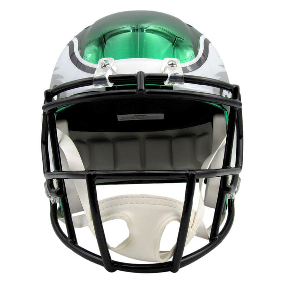 Devonta smith signed full size chrome replica football helmet philadelphia eagles. this helmet is authenticated by fanatics authentic and includes their tamper-proof hologram sticker.