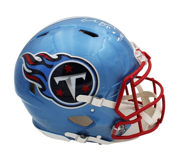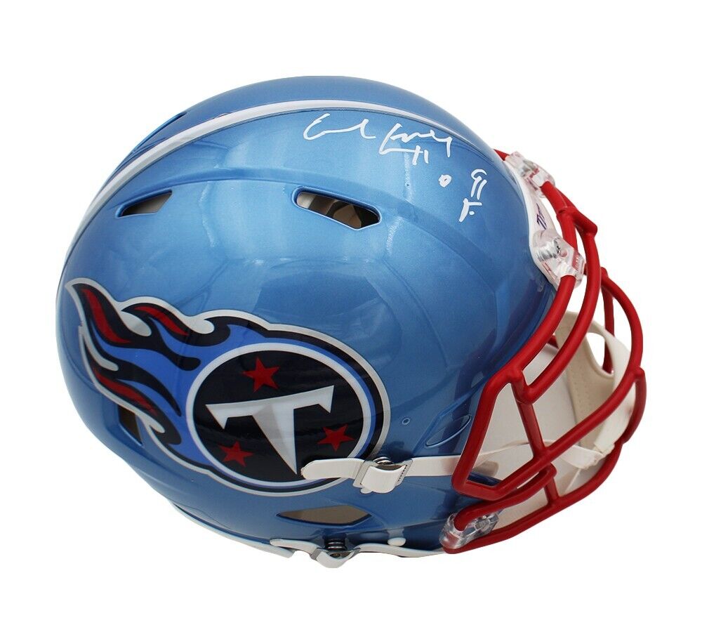 A Tennessee Titans Speed Authentic Flash NFL Helmet Hand Signed by Earl Campbell. In addition to signing his name, Earl also inscribed "HOF 91" on the item. AUTHENTICATION: The item is accompanied by a Beckett Serial Numbered and Databased Hologram
