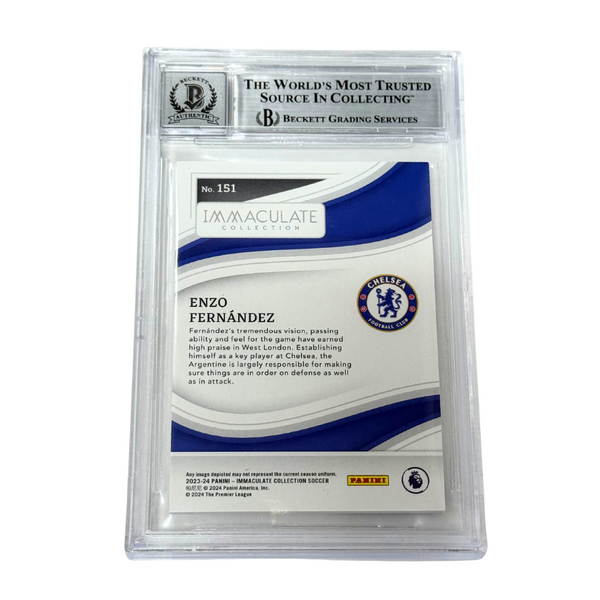 This is a Enzo Fernandez Signed 2023-24 Panini Immaculate #151 - Beckett Witness. THE ITEM IN THE PICTURE IS A STOCK IMAGE. YOU WILL RECEIVE AN IDENTICAL ITEM OF EQUAL QUALITY. ALL JERSEYS ARE SIZE LARGE. Every item of signed memorabilia we sell is official and of the highest quality. We pride ourselves on providing sports fans with the most exclusive signed memorabilia on the market. We are an industry leading signed memorabilia company who can guarantee 100% authenticity on every signature we sell. The item you receive will be identical to the one you are seeing in the stock pictures. This includes the item, the authentication company, signature color and signature placement. We take pride in ensuring the authenticity of all our items. With unwavering commitment, we guarantee that every signature is 100% authentic. Every item of signed memorabilia comes with a scannable barcode which takes you to the certificate of authenticity on the company's website. These industry leading authentication companies include Beckett Authentication Services, James Spencer Authentication Services and Professional Sports Authentication Services.
