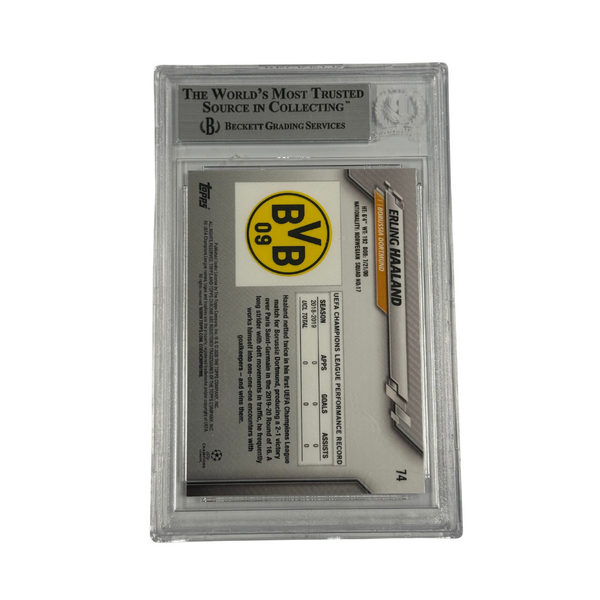 This is a Erling Haaland Signed 2019-20 Topps Chrome UCL Rookie Card - BGS Auto Authentic. THE ITEM IN THE PICTURE IS A STOCK IMAGE. YOU WILL RECEIVE AN IDENTICAL ITEM OF EQUAL QUALITY. ALL JERSEYS ARE SIZE LARGE. Every item of signed memorabilia we sell is official and of the highest quality. We pride ourselves on providing sports fans with the most exclusive signed memorabilia on the market. We are an industry leading signed memorabilia company who can guarantee 100% authenticity on every signature we sell. The item you receive will be identical to the one you are seeing in the stock pictures. This includes the item, the authentication company, signature color and signature placement. We take pride in ensuring the authenticity of all our items. With unwavering commitment, we guarantee that every signature is 100% authentic. Every item of signed memorabilia comes with a scannable barcode which takes you to the certificate of authenticity on the company's website. These industry leading authentication companies include Beckett Authentication Services, James Spencer Authentication Services and Professional Sports Authentication Services.