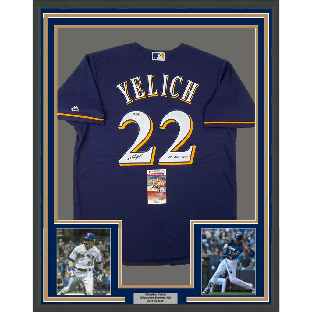 Framed Autographed Christian Yelich 33x42 MVP Milwaukee Brewers Jersey JSA COA