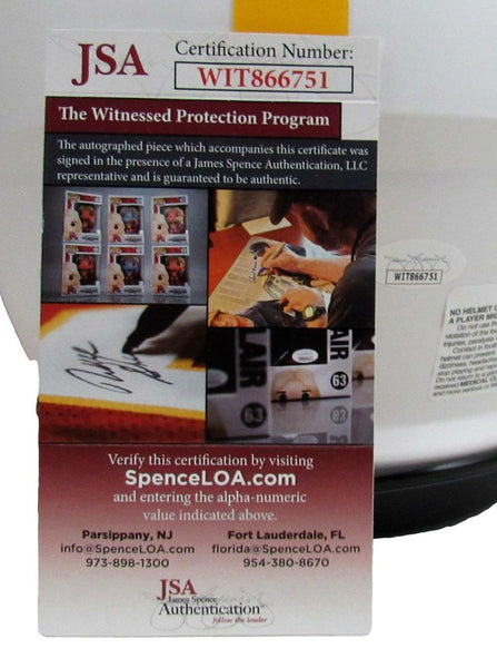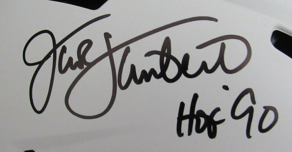 Jack lambert hof signed/inscribed "hof 90" pittsburgh steelers white full size lunar eclipse authentic helmet. this helmet is authenticated by jsa and includes their tamper-proof sticker and certificate of authenticity.
