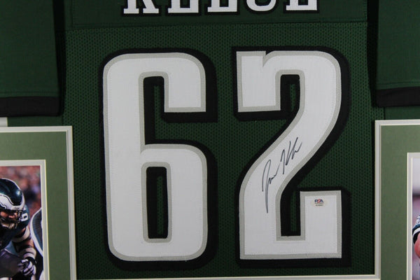 JASON KELCE AUTOGRAPHED & PROFESSIONALLY FRAMED PRO-STYLE JERSEY(Occasionally our own stock pictures are used at times due to quantity of framing, all frames will look identical as the one pictured)THE FRAMED JERSEY MEASURES 35"x 44" & COMES WITH THE FOLLOWING:-UV Protected Acrylic-Triple Acid Free Team Colored Matting-2 High Quality 8"x10" Photos-Team LogoEvery framed autographed jersey is accompanied with a tamper-proof hologram on the signed part of the jersey from one of the main authenticators in the industry (JSA, Beckett, PSA, etc.) and can be verified on their corresponding websites to prove authenticity.ATTENTION:If there's any damage during shipping then please message us immediately and save the box!DO NOT OPEN A RETURN OR DISPUTE PLEASE!We will provide a return label to send the frame back so we can fix any issues right away and ship it right back to you, free of charge of course!WE DO NOT OFFER PARTIAL REFUNDS TO FIX LOCALLY AS EVERYTHING IS FRAMED/FIXED IN HOUSE- Thank you -
