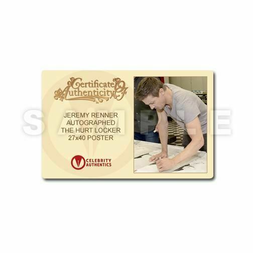 This The Hurt Locker Original 27x40 Double-Sided Movie Poster has been personally hand-signed by Jeremy Renner during his signing with Celebrity Authentics. Jeremy portrayed Sergeant First Class William James in the Award Winning film. Ships affixed with Celebrity Authentics serial-numbered and tamper evident Authentication Hologram and includes Celebrity Authentics Certificate of Authenticity featuring picture of Jeremy signing poster. Please note: with multiples signed by the actor, a sample photo is used from stock to represent what you will receive. Exact autograph size and placement may vary.