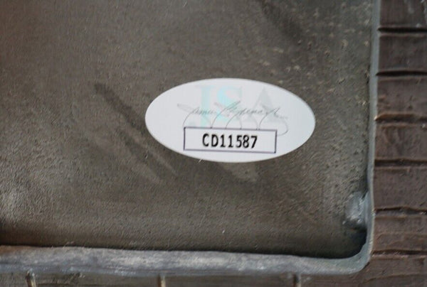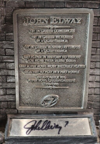 The product is a John Elway signed Michael Richer Pewter Statue with authentication by James Spence Authentication (JSA). It is an original autograph and features a JSA hologram/certificate to verify authenticity. The statue is related to football, specifically the Denver Broncos, and is a unique collectible item for fans of John Elway and the NFL.