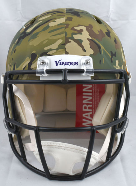 This is a Justin Jefferson hand autographed Riddell football full size Camo Speed Authentic helmet. This item has a Beckett Witnessed Authentication, which comes with a numbered hologram and a QR code for verification. You can view this item on the Beckett Authentication website, it shows when and where the item was signed. It was signed either at a public autograph appearance or a private signing. This is a stock photo of the item. Although you may not receive this exact item, the item you receive is virtually identical, brand new, and in great shape. This is a Justin Jefferson hand autographed Riddell football full size Camo Speed Authentic helmet. This item has a Beckett Witnessed Authentication, which comes with a numbered hologram and a QR code for verification. You can view this item on the Beckett Authentication website, it shows when and where the item was signed. It was signed either at a public autograph appearance or a private signing. This is a stock photo of the item. Although you may not receive this exact item, the item you receive is virtually identical, brand new, and in great shape.