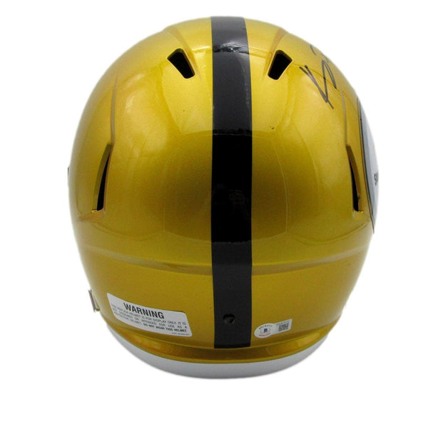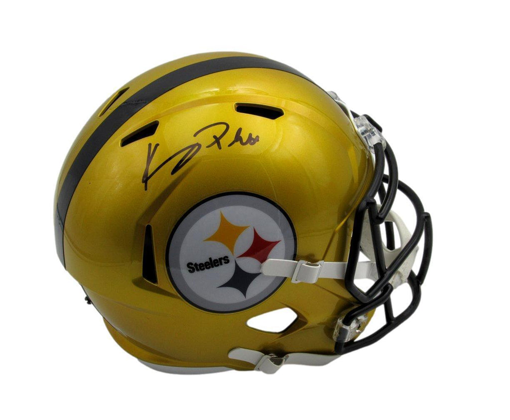 Kenny pickett autographed gold flash full size replica football helmet pittsburgh steelers. this helmet is authenticated by bas/beckett and includes their tamper-proof sticker and certificate of authenticity.