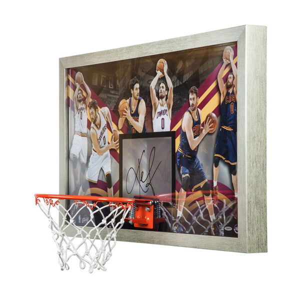 Upper Deck Authenticated has produced some of the most unique sports memorabilia the world has ever seen. Our line of backboards is among the most original and breathtaking. Following in the steps of backboards done for Michael Jordan, LeBron James and Allen Iverson, UDA has now produced one for Cleveland Cavaliers forward Kevin Love. It features six action images of Love with a uniquely designed ghosted image in the background that gives the piece a 3-D effect. The foreground design is embedded on an acrylic layer and the background is printed on another layer. The centerpiece is the autograph that sits in the middle of the shooter's square. An actual breakaway rim is attached to the backboard to give it a scaled version of an actual backboard. A solid silver frame gives the piece the look of a classy backboard and gives the full piece a measurement of 30.5" x 18.5". Please note that this is not a toy. It should not be played with. The autograph is signed in paint pen with a thin 1/16" layer of acrylic covering the piece to protect the signature. Love has autographed this limited edition (30) "All-Around Game" backboard in black paint pen. His signature is deemed authentic by virtue of Upper Deck Authenticated's Five-Step Process.