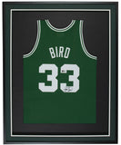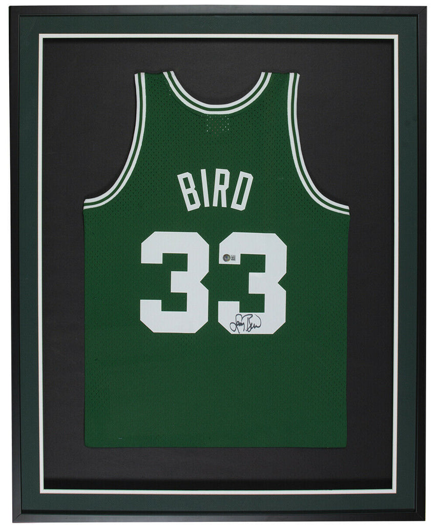 Featured is a Larry Bird signed framed Boston Celtics Mitchell & Ness Swingman basketball jersey. This jersey was hand signed by Larry Bird and has been authenticated by Beckett authentication services. Included with the jersey is a Beckett hologram and certificate of authentication. The jersey is professionally framed and matted, measures approximately 32x36. Brand new professional framing and ready to display! This item would make a great addition to any sports memorabilia collection!. SPECIFICATIONS Autographed By: Larry Bird Team: Boston Celtics Sport: Basketball-NBA Authentication: Professional Sports Authenticator (PSA)