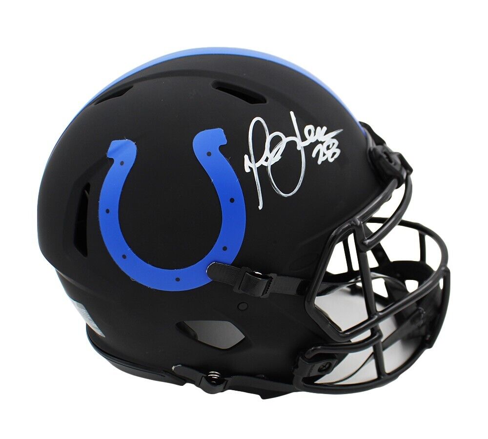 An Indianapolis Colts Speed Authentic Eclipse NFL Helmet Hand Signed by Marshall Faulk. The item and signature are in excellent condition. Marshall Faulk, would become the first NFL player to win both the Offensive Rookie of the Year Award and the Pro Bowl's Most Valuable Player Award in the same season. He is also a Super Bowl Champion and a 7x Pro Bowler. AUTHENTICATION: Your item has been tagged with a SmarTag powered by Prova Technology, which gives you digital access to your items authentication records, including a proof picture from the signing.