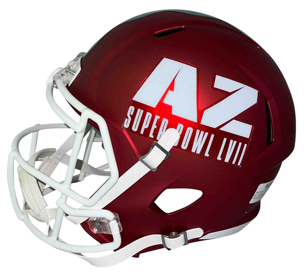 Patrick Mahomes and Travis Kelce have each hand signed this Super Bowl LVII Riddell Speed full-size replica helmet at a private signing. This item is authenticated by Beckett Authentication Services and was signed in the presence of one of their representatives. Their tamper-evident hologram featuring a QR code and serial number is on the item. The authenticity can be verified online by entering the serial number or scanning the QR code.Item pictured may not be the exact item you will receive. It will be similar quality, and we guarantee your satisfaction.