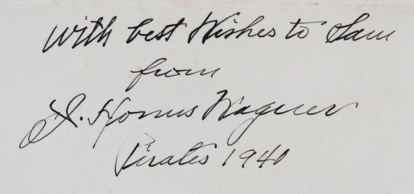 This Autographed 6x9.5 Handwritten Letter with the inscription of "With Best Wishes To Sam From, Pirates 1940" has been Personally Signed by Honus Wagner of the Pittsburg Pirates. This item is 100% Authentic to include a Certificate of Authenticity (COA) / hologram by JSA. The authenticity can be verified on JSA website.