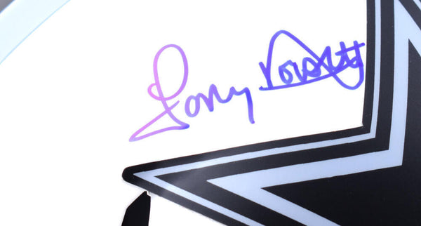 Roger Staubach Tony Dorsett Autographed Cowboys F/S Lunar Speed Authentic Helmet- Beckett W Hologram *Blue This is a Roger Staubach and Tony Dorsett of the Dallas Cowboys hand autographed Riddell football Lunar Speed F/S Authentic Helmet. This item has a Beckett Witnessed Authentication, which comes with a Beckett numbered hologram and a QR code for verification. You can view this item on the Beckett Authentication website and it shows when and where the item was signed. It was signed either at a public autograph appearance or a private signing. This is a stock photo of the item. Although you may not receive this exact item, the item you receive is virtually identical, brand new, and in great shape.