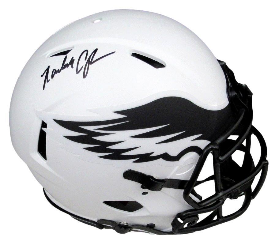 Randall cunningham autographed white full size lunar eclipse authentic football helmet philadelphia eagles. this helmet is authenticated by bas/beckett and includes their tamper-proof sticker.