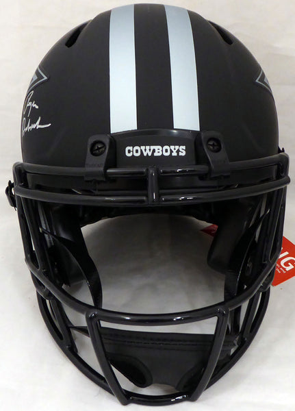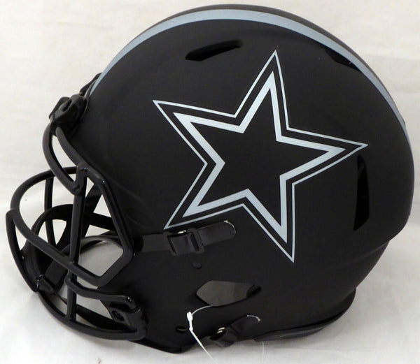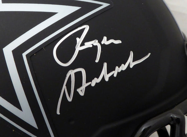 This is an Eclipse Black Dallas Cowboys Full Size Authentic Speed Helmet that has been hand signed by Roger Staubach. This item has been certified authentic by Beckett Authentication (BAS) and comes with their serial numbered sticker and matching certificate of authenticity. A A A A NOTE: The Eclipse Black helmets are very delicate and often have some marks or scratches on them.
