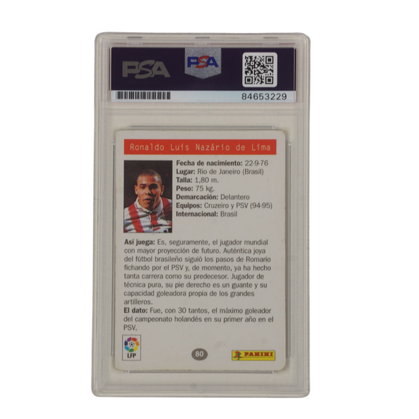 This is a Ronaldo Nazario Signed 1996 Panini Estrellas Europeas #80 Rookie - PSA Authentic. THE ITEM IN THE PICTURE IS A STOCK IMAGE. YOU WILL RECEIVE AN IDENTICAL ITEM OF EQUAL QUALITY. ALL JERSEYS ARE SIZE LARGE. Every item of signed memorabilia we sell is official and of the highest quality. We pride ourselves on providing sports fans with the most exclusive signed memorabilia on the market. We are an industry leading signed memorabilia company who can guarantee 100% authenticity on every signature we sell. The item you receive will be identical to the one you are seeing in the stock pictures. This includes the item, the authentication company, signature color and signature placement. We take pride in ensuring the authenticity of all our items. With unwavering commitment, we guarantee that every signature is 100% authentic. Every item of signed memorabilia comes with a scannable barcode which takes you to the certificate of authenticity on the company's website. These industry leading authentication companies include Beckett Authentication Services, James Spencer Authentication Services and Professional Sports Authentication Services.