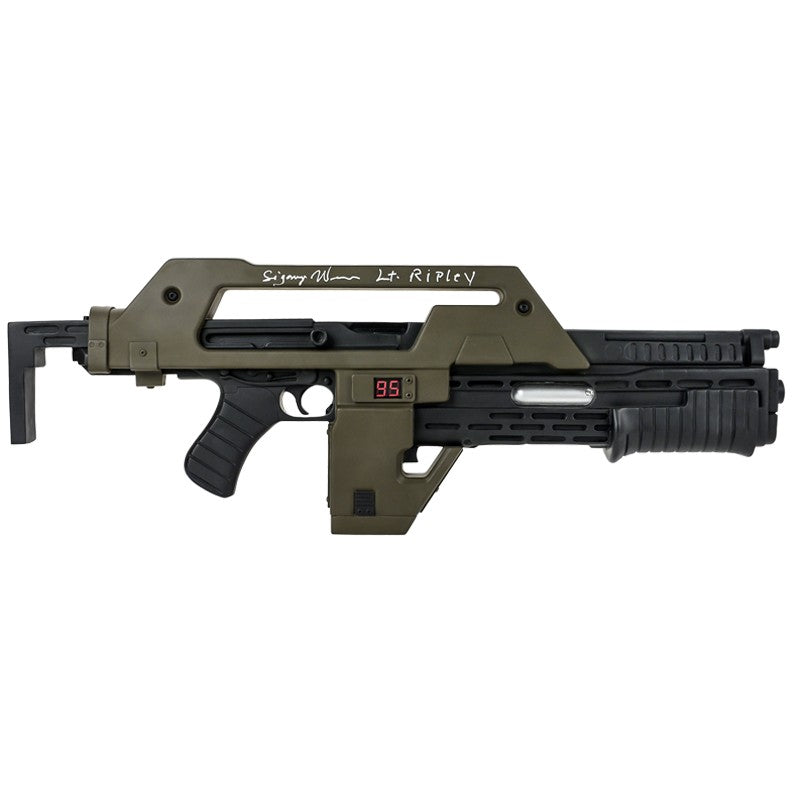 Sigourney Weaver Autographed 1986 Aliens Pulse Rifle OD Green Prop Replica