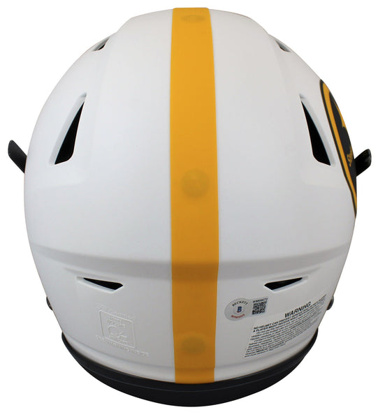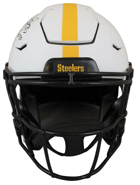 This Autographed Alternate Lunar Authentic Riddell Speed Flex Full Size Helmet with the inscription of "HOF 20" has been Personally Signed by Troy Polamalu of the Pittsburgh Steelers. This item is 100% Authentic to include a hologram by Beckett Authentication Services. This item will come with the new Beckett Authentication hologram that has a scannable QR code rather than the traditional COA. If you would like to have a COA, you are welcome to reach out to Beckett for a printed certification once you receive your item. This is a BAS Witnessed Protection Program item which means a Beckett Authentication Service representative was present when this item was being signed. This is a stock item. We conducted an autograph signing with Troy Polamalu and we have several of these available. The one you will receive will be of equal quality to the one pictured. This item can be verified through BAS Witnessed.