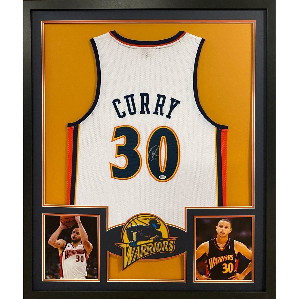Stephen Curry Autographed Signed Framed White TB Warriors Steph Jersey BECKETT