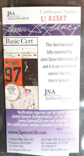 Stephen King Autographed Index Card "The King of Horror" Framed Collage Capture the essence of terror with this Stephen King autographed index card in a stunningly framed "The King of Horror" collage. This extraordinary collectible features an autographed 3x5 index card with the inscription "Happy Birthday!" dated 9/16/93, making it a must-have for fans of the master of horror. Product Highlights: Authentic Signature: Hand-signed by horror legend Stephen King Personal Inscription: "Happy Birthday!" dated 9/16/93 "King of Horror" Collage: Professionally designed themed display 3x5 Index Card: Authentic signed index card format Certificate of Authenticity: James Spence Authentication COA Investment Grade: Perfect for serious collectors and investors About Stephen King: Stephen King, "The King of Horror," is one of the most prolific and successful authors of our time. With over 60 novels and 200 short stories, King has sold more than 350 million copies worldwide. His works including "The Shining," "IT," "Carrie," and "The Stand" have become cultural phenomena, spawning countless film and television adaptations. King's autographed memorabilia is highly sought after by collectors of literary and horror memorabilia. Perfect For: Stephen King collectors Horror literature enthusiasts Autograph collectors Literary memorabilia fans Investment portfolio addition Gift for horror fans Collage Specifications: 3x5 autographed index card | "Happy Birthday!" inscription dated 9/16/93 | "The King of Horror" themed collage | James Spence Authentication COA | Professional framing This collector's item is sure to thrill fans of the master of horror and represents a unique piece of literary history from one of the world's most celebrated authors.