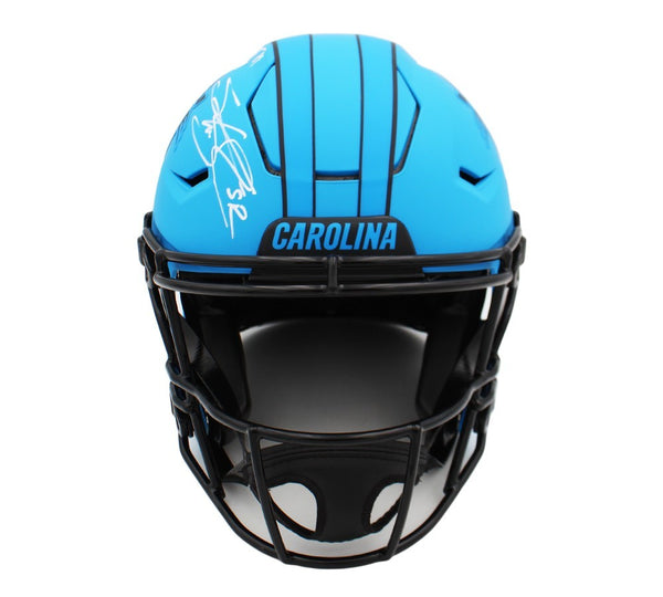 A Carolina Panthers Speed Flex Authentic Rave NFL Helmet hand signed by Steve Smith Sr. In addition to signing his name, Steve also inscribed "Agent 89" on the item. The item and signature are in excellent condition. Steve is one of the feistiest players in NFL history. His attitude and determination have made him a fan favorite in Baltimore and Carolina. Now bring home a piece of his exclusive memorabilia line that celebrates the career of a true NFL icon. AUTHENTICATION: The item has been tagged with a SmarTag powered by Prova Technology, which gives you digital access to the items authentication records, including a proof picture from the signing.