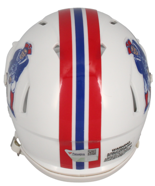 This mini throwback speed helmet has been personally hand-signed by tom brady. it is officially licensed by the national football league and comes with an individually numbered, tamper-evident hologram from fanatics authentic. to ensure authenticity, the hologram can be reviewed online. this process helps to ensure that the product purchased is authentic and eliminates any possibility of duplication or fraud.