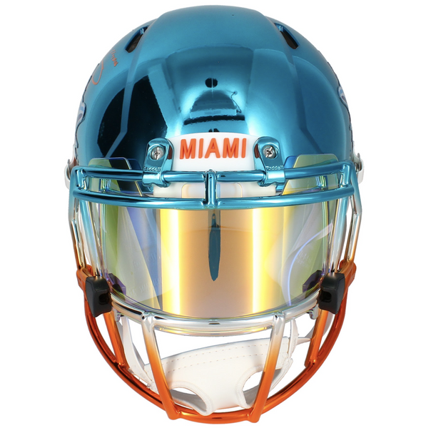 Tyreek Hill Autographed / Inscribed "Cheetah" Miami Dolphins Custom Chrome Speed Authentic Helmet Beckett WitnessedThis Miami Dolphins authentic speed helmet has been personally hand-signed by Tyreek Hill with the added inscription "Cheetah." It comes with an individually numbered, tamper-evident hologram from Beckett Authentic. To ensure authenticity, the hologram can be reviewed online. This process helps to ensure that the product purchased is authentic and eliminates any possibility of duplication or fraud.