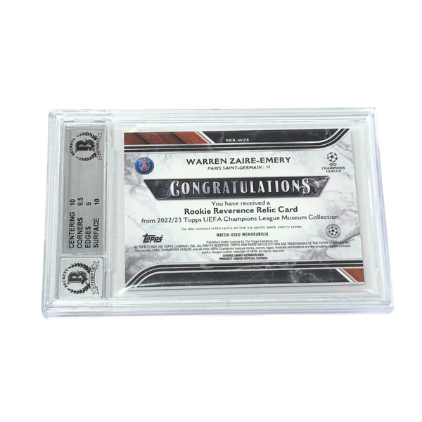 This is a Warren Zaire-Emery Signed 2022 Topps Museum UCL Rookie Relics /199 - BGS 9. THE ITEM IN THE PICTURE IS A STOCK IMAGE. YOU WILL RECEIVE AN IDENTICAL ITEM OF EQUAL QUALITY. ALL JERSEYS ARE SIZE LARGE. Every item of signed memorabilia we sell is official and of the highest quality. We pride ourselves on providing sports fans with the most exclusive signed memorabilia on the market. We are an industry leading signed memorabilia company who can guarantee 100% authenticity on every signature we sell. The item you receive will be identical to the one you are seeing in the stock pictures. This includes the item, the authentication company, signature color and signature placement. We take pride in ensuring the authenticity of all our items. With unwavering commitment, we guarantee that every signature is 100% authentic. Every item of signed memorabilia comes with a scannable barcode which takes you to the certificate of authenticity on the company's website. These industry leading authentication companies include Beckett Authentication Services, James Spencer Authentication Services and Professional Sports Authentication Services.