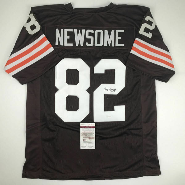 Autographed/Signed OZZIE NEWSOME HOF 99 Cleveland Brown Football Jersey JSA COA This is a custom jersey and was not manufactured by or in any manner associated with any professional sports league or manufacturer. This custom jersey carries no professional sports league designation. The item is intended to be an autographed collectible. Reference of team in the title is to allow the purchaser a point of association. The custom jersey displays the name, number and authenticated signature of the player. This item in no way is affiliated with or connected to any professional sports organization. The autograph, as always is guaranteed to be authentic and has been certified as authentic by a third-party, trusted authenticator. Size is XL unless otherwise noted.