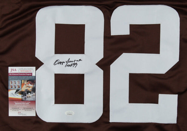 Ozzie Newsome HOF Signed/Inscribed "HOF 99" Cleveland Browns Custom Brown Football Jersey Size XL. This jersey is authenticated by BAS/Beckett and includes their Tamper-proof Sticker and Certificate of Authenticity.