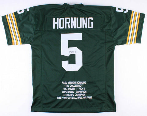 Paul Hornung Signed Green Bay Packers Career Highlight Stat Jersey (JSA COA)