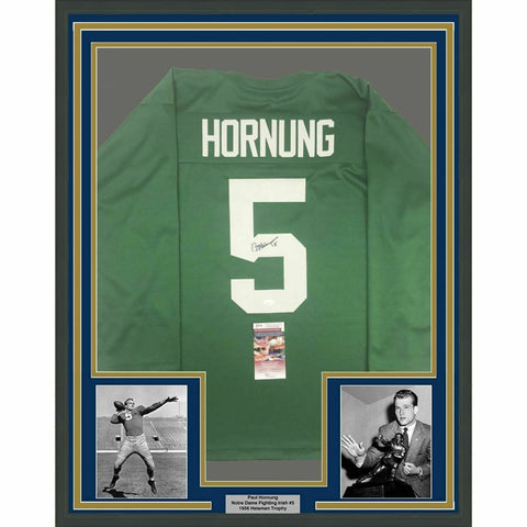 FRAMED Autographed/Signed PAUL HORNUNG 33x42 Notre Dame Green Jersey JSA COA