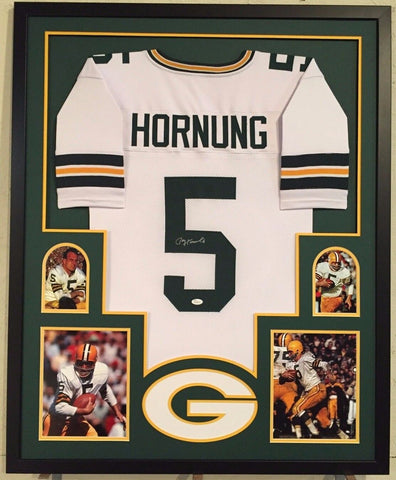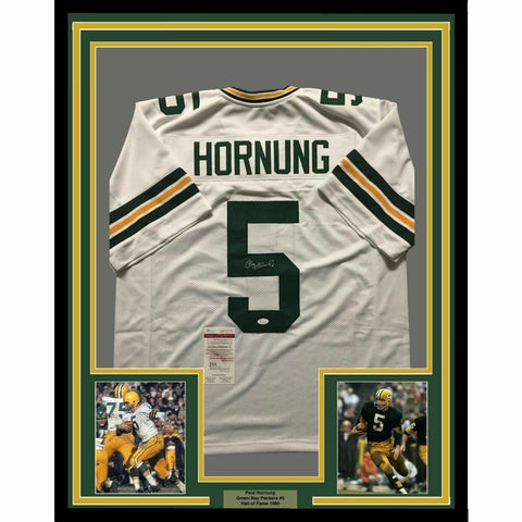 FRAMED Autographed/Signed PAUL HORNUNG 33x42 Green Bay White Jersey JSA COA Auto