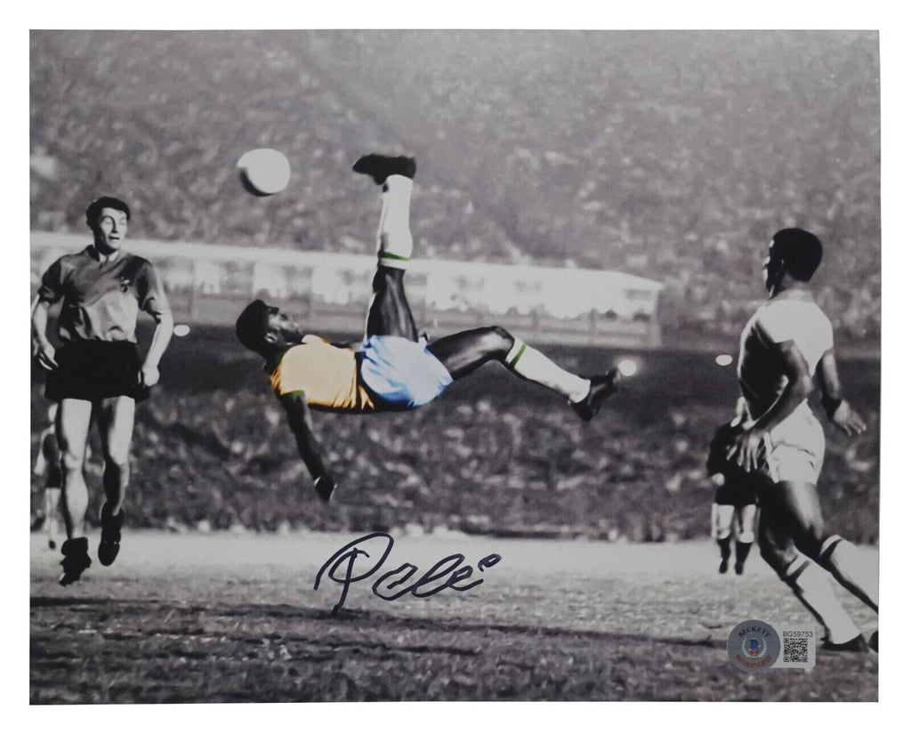 This is a Pele Signed Iconic Overhead Kick Soccer Print Size 8'' x 10'' with Beckett COA. THE ITEM IN THE PICTURE IS A STOCK IMAGE. YOU WILL RECEIVE AN IDENTICAL ITEM OF EQUAL QUALITY. ALL JERSEYS ARE SIZE LARGE. Every item of signed memorabilia we sell is official and of the highest quality. We pride ourselves on providing sports fans with the most exclusive signed memorabilia on the market. We are an industry leading signed memorabilia company who can guarantee 100% authenticity on every signature we sell. The item you receive will be identical to the one you are seeing in the stock pictures. This includes the item, the authentication company, signature color and signature placement. We take pride in ensuring the authenticity of all our items. With unwavering commitment, we guarantee that every signature is 100% authentic. Every item of signed memorabilia comes with a scannable barcode which takes you to the certificate of authenticity on the company's website. These industry leading authentication companies include Beckett Authentication Services, James Spencer Authentication Services and Professional Sports Authentication Services.