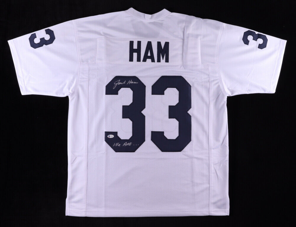 Custom on-field style jersey. Everything sewn on, size XL. Hand-signed by Jack Ham (Pittsburgh Steelers, HOF).The lot / autograph(s) includes an official Beckett Authentication Services serially-numbered hologram and matching COA for authenticity purposes. The signing of this item was witnessed by Beckett.Authentication: Beckett COA