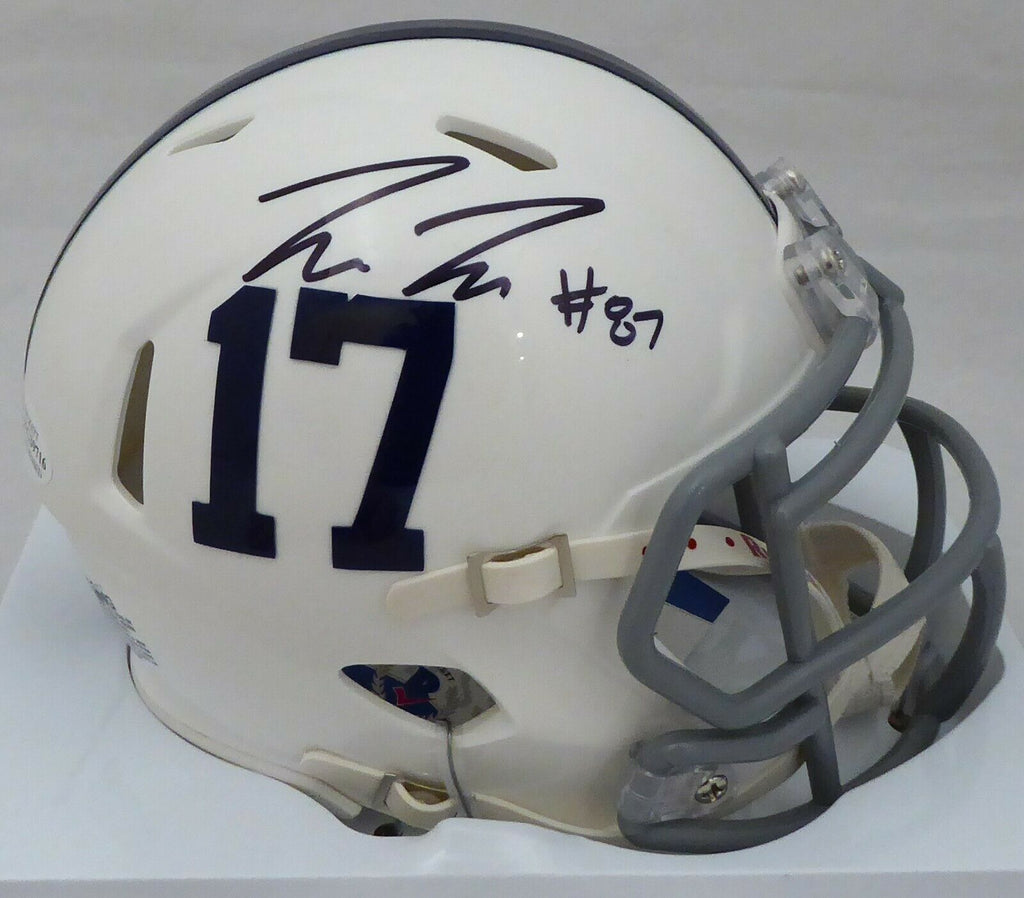 This is a Penn State Nittany Lions White Speed Mini Helmet that has been hand signed by Pat Freiermuth. This item has been certified authentic by Beckett Authentication (BAS) and comes with their tamper-proof sticker and matching certificate of authenticity.
