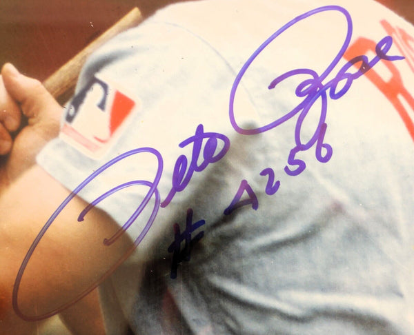 The product is an original 8x10 photo signed by Pete Rose of the Cincinnati Reds, with autograph authentication from James Spence Authentication (JSA). It includes a plaque.
