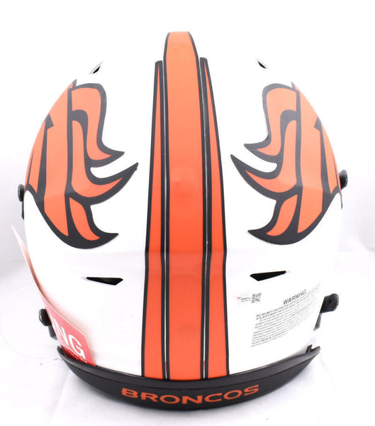 Peyton Manning Autographed Denver Broncos Lunar Flex F/S Helmet- Fanatics *Blue *Faded *Faded you will receive helmet shown in photo* This is a Peyton Manning of the Denver Broncos hand autographed Riddell Football Full Size Lunar Flex Authentic Helmet. This item has a Fanatics Authentication, which comes with a numbered sticker and a matching Fanatics Certificate of Authenticity. You can view this item on the Fanatics Authentication website and it shows when and where the item was signed. It was signed either at a public autograph appearance or a private signing.