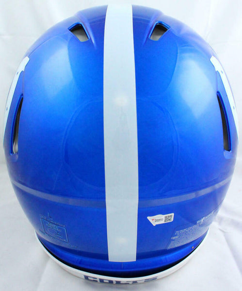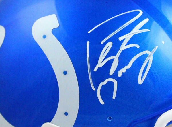 Peyton Manning Autographed Colts Flash Speed F/S Authentic Helmet- Fanatics *White This is a Peyton Manning of the Indianapolis Colts hand autographed Riddell Football Full Size Flash Speed Authentic Helmet. This item has a Fanatics Authentication, which comes with a numbered sticker and a matching Fanatics Certificate of Authenticity. You can view this item on the Fanatics Authentication website and it shows when and where the item was signed. It was signed either at a public autograph appearance or a private signing. This is a stock photo of the item. Although you may not receive this exact item, the item you receive is virtually identical, brand new, and in great shape.