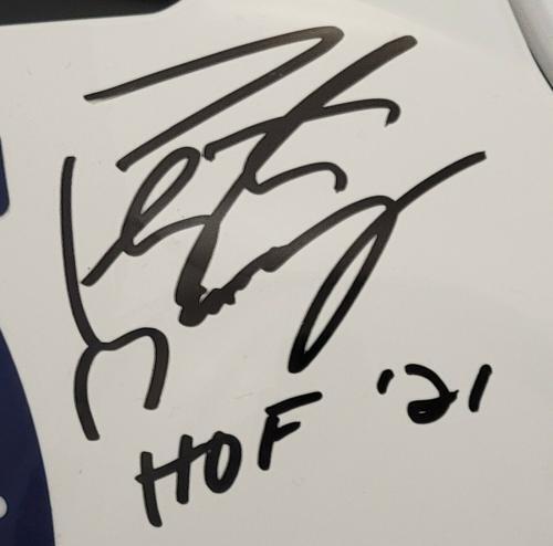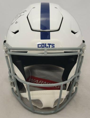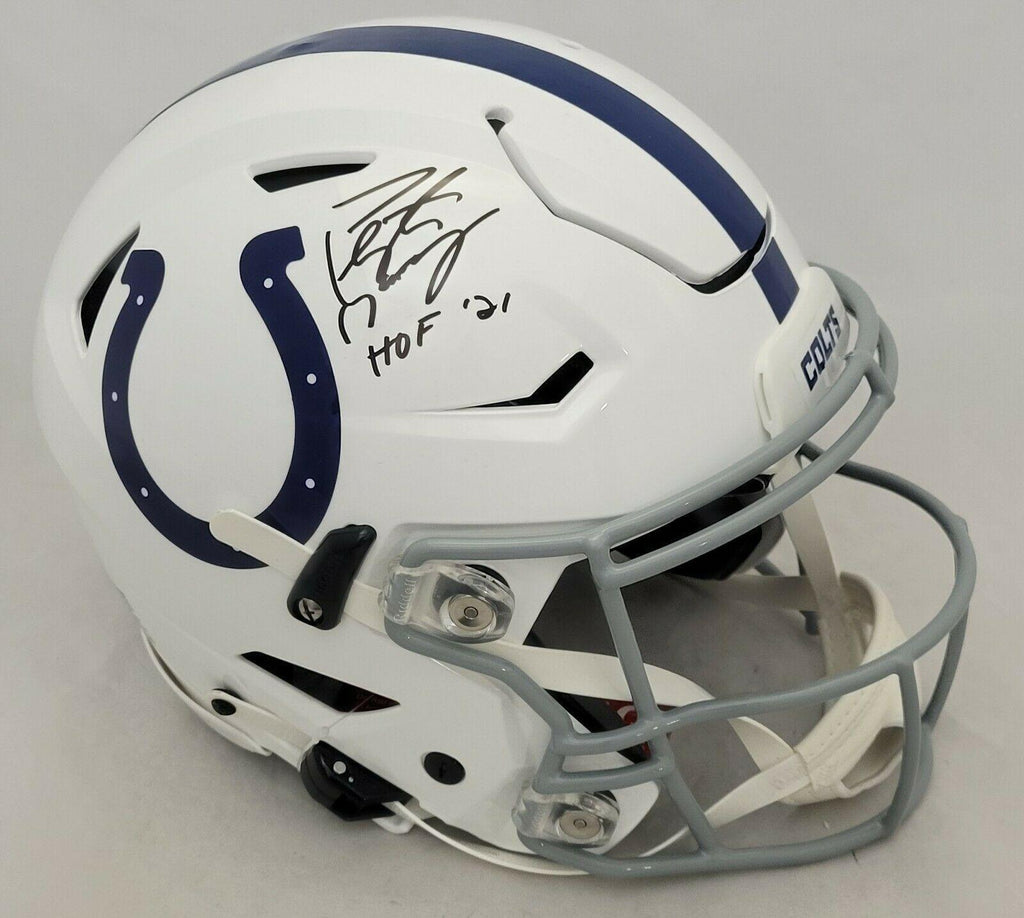 PEYTON MANNING AUTOGRAPHED INDIANAPOLIS COLTS FULL SIZE SPEEDFLEX AUTHENTIC HELMET"HOF 21" INSCRIPTIONFANATICS AUTHENTIC COATHIS MEANS THE HELMET WAS SIGNED WITH A FANATICS REPRESENTATIVE PRESENT SO YOU CAN BE 100% CERTAIN ITS THE REAL THING.