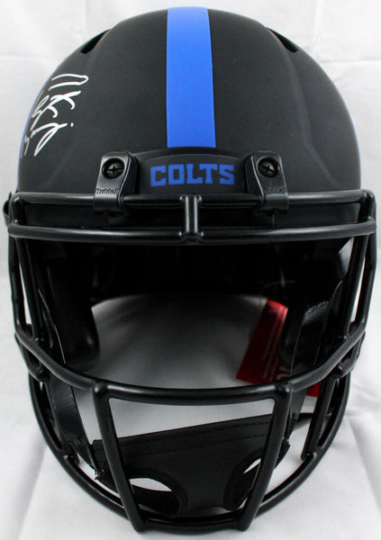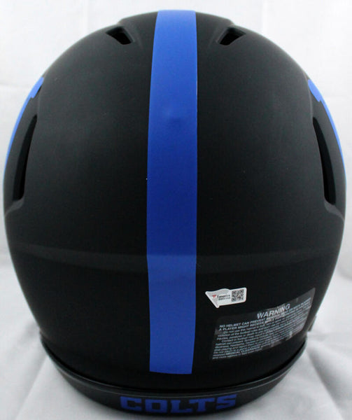 Peyton Manning Autographed Colts Eclipse F/S Speed Authentic Helmet-Fanatics *Silver This is a Peyton Manning of the Indianapolis Colts hand autographed Riddell Football Full Size Eclipse Speed Authentic Helmet. This item has a Fanatics Authentication, which comes with a numbered sticker and a QR code for verification. You can view this item on the Fanatics Authentication website and it shows when and where the item was signed. It was signed either at a public autograph appearance or a private signing. This is a stock photo of the item. Although you may not receive this exact item, the item you receive is virtually identical, brand new, and in great shape.