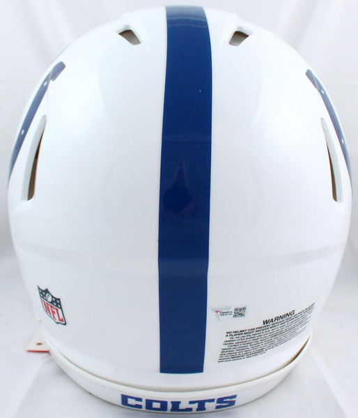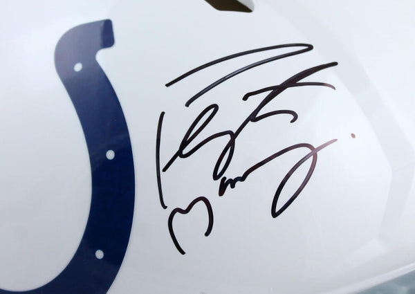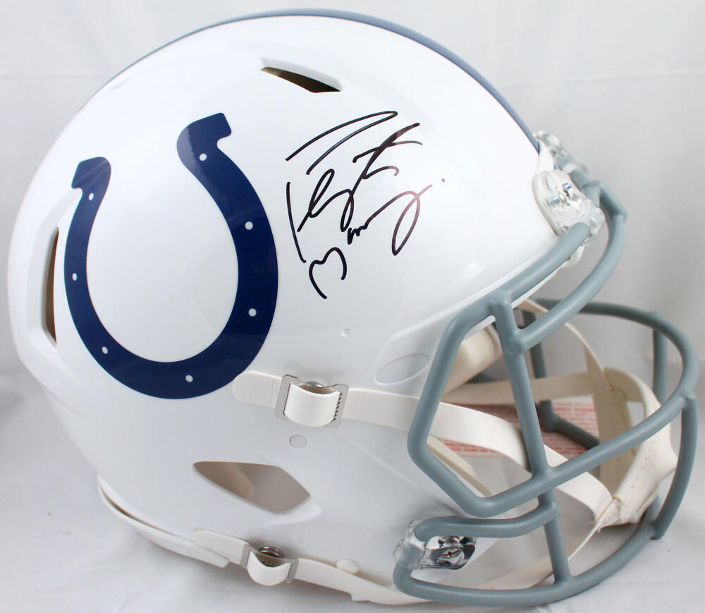 Peyton Manning Autographed Indianapolis Colts Speed Authentic F/S Helmet-Fanatics *Black This is a Peyton Manning of the Indianapolis Colts hand autographed Riddell Football Full Size Speed Authentic Helmet. This item has a Fanatics Authentication, which comes with a numbered sticker and a QR code for authentication. You can view this item on the Fanatics Authentication website and it shows when and where the item was signed. It was signed either at a public autograph appearance or a private signing. This is a stock photo of the item. Although you may not receive this exact item, the item you receive is virtually identical, brand new, and in great shape.