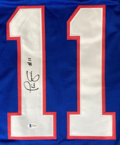 Featured is a Phil Simms signed custom football jersey. This jersey has been hand signed by Simms and comes with the Beckett hologram and certificate of authenticity. This jersey features professionally sewn letters and numbers and is size XL. This jersey has no team tags or emblems and is intended as a sports collectible. This jersey would make a great addition to any sports memorabilia collection!. SPECIFICATIONS Autographed By: Phil Simms Team: New York Giants Sport: Football Authentication: Beckett Grading Services