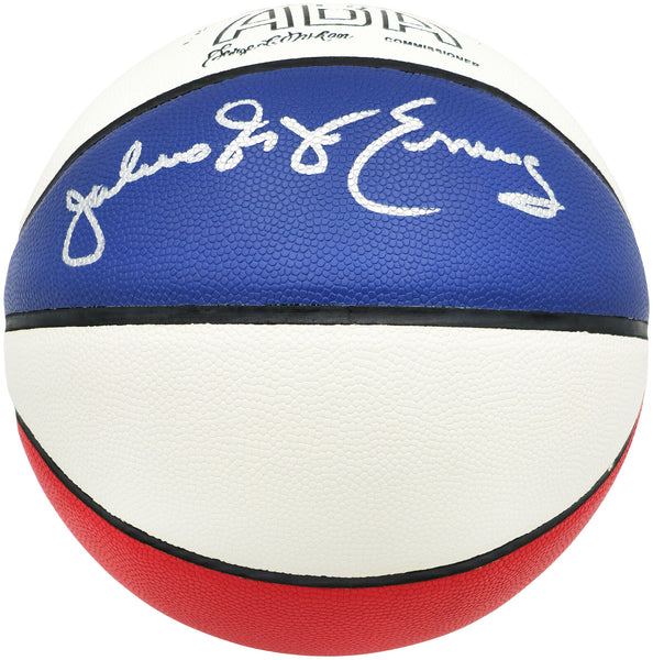 This is an Official ABA Basketball that has been hand signed by Julius "Dr. J" Erving This item has been witnessed and certified authentic by Beckett Authentication (BAS) and comes with their tamper-proof witness sticker.