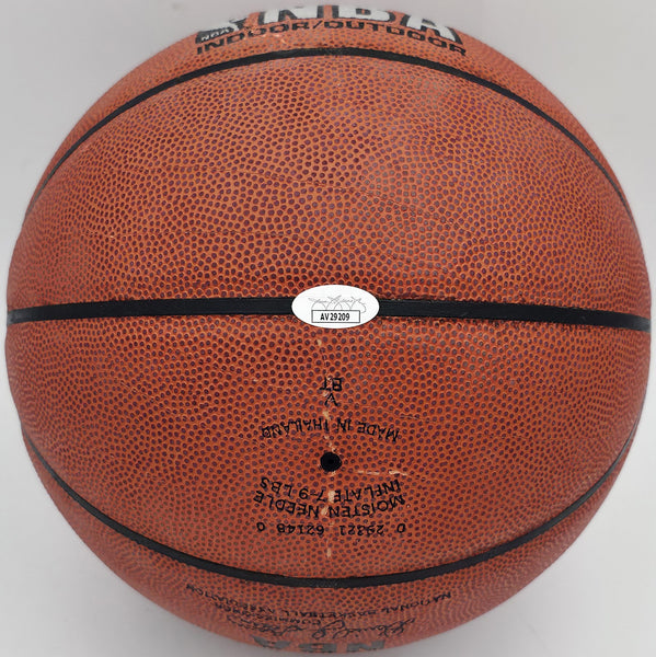 This is an Official NBA Leather Basketball that has been hand signed by Moses Malone. There are scuffs in the basketball as shown. This item has been certified authentic by JSA and comes with their tamper-proof hologram and matching certificate of authenticity.