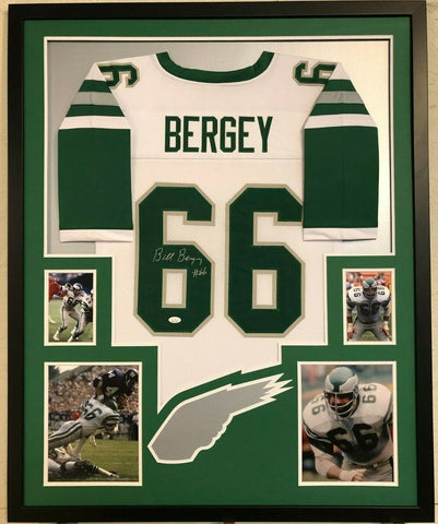 FRAMED PHILADELPHIA EAGLES BILL BERGEY AUTOGRAPHED SIGNED JERSEY JSA COA