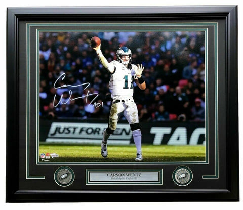 Carson Wentz Signed Framed Philadelphia Eagles 16x20 Throwing Photo Fanatics