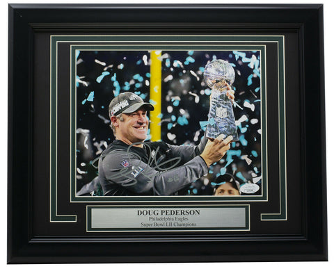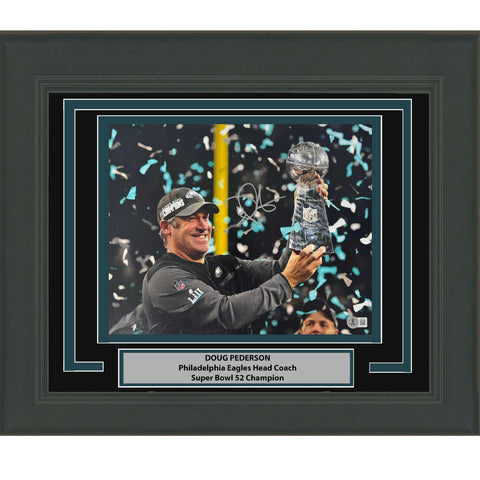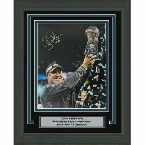 Doug Pederson Signed Framed Philadelphia Eagles 8x10 Trophy Close Up Photo JSA